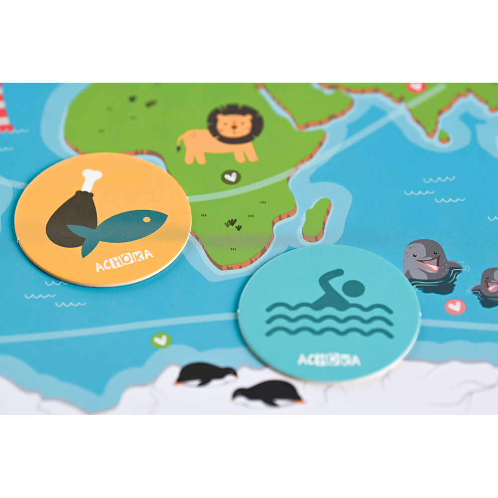 The set also supports emotional and social development. Learning about animals from different parts of the world fosters empathy, sensitivity, and respect for living beings. Children learn that each animal has its needs and role in the ecosystem, which reinforces a sense of responsibility and cognitive curiosity towards nature and the world as a whole.