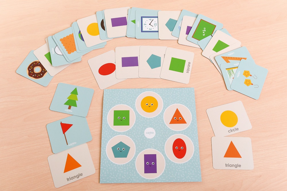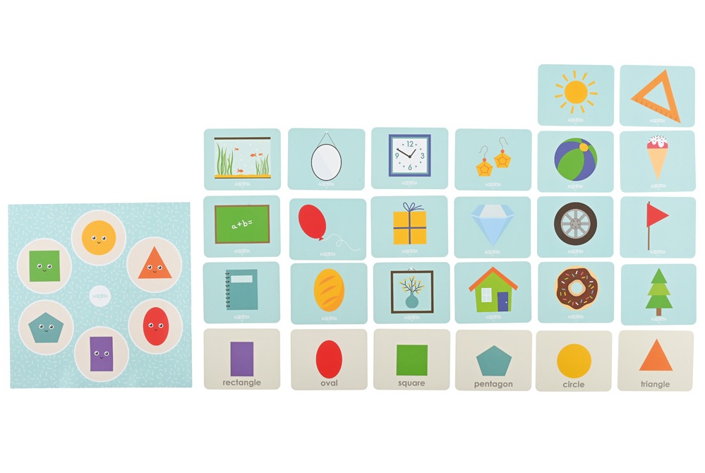 By working with the cards, children learn to relate shapes to everyday objects. Such associations make it easier to understand word meanings and support the retention of new vocabulary.