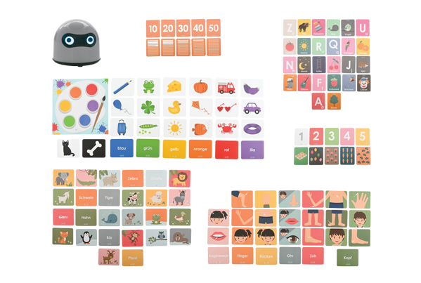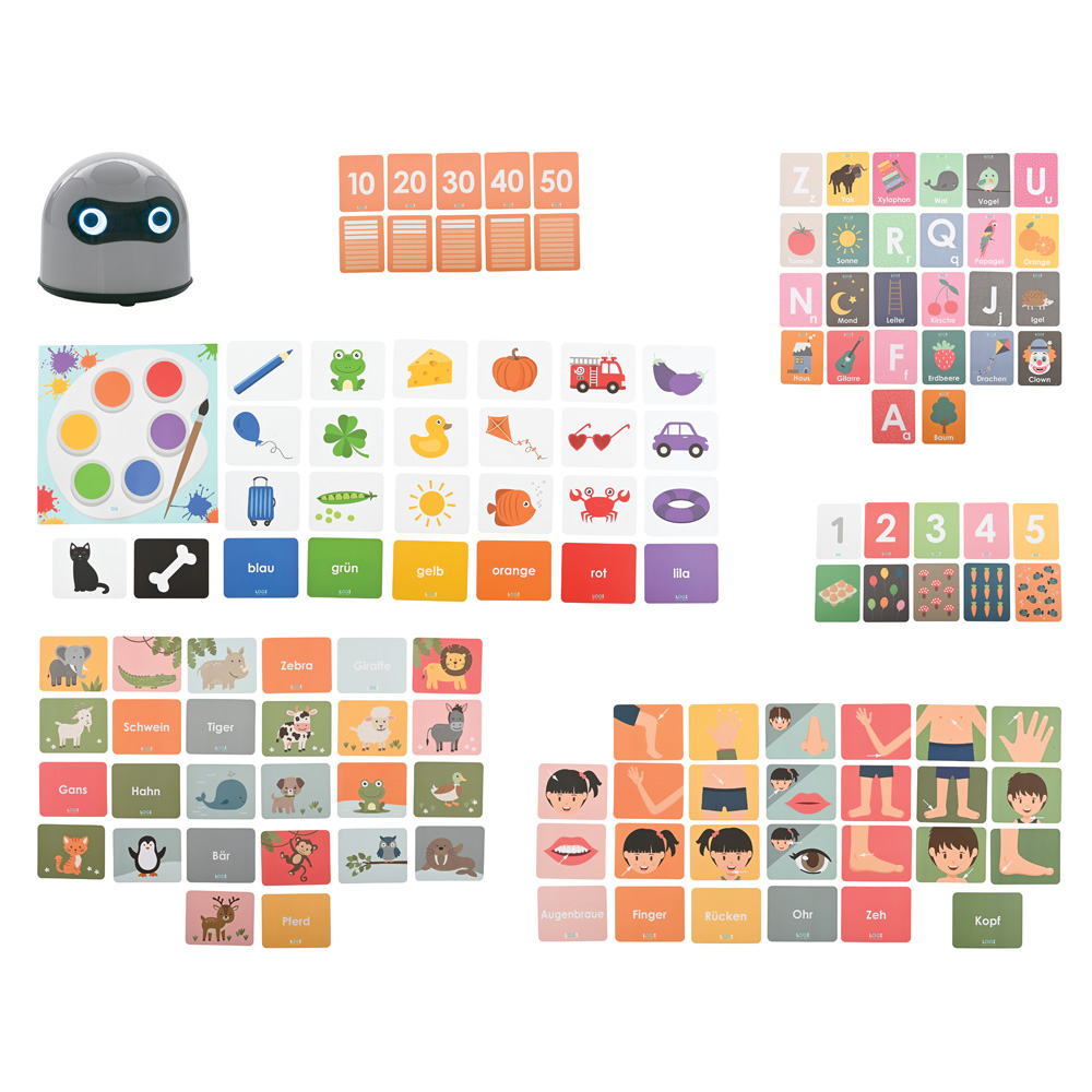 To kompletny zestaw edukacyjny, który wprowadza dzieci w świat języka obcego w sposób naturalny, intuicyjny i angażujący. Zestaw łączy nowoczesnego, mówiącego robota LOGI miniBot z szerokim wyborem tematycznych kart edukacyjnych, które rozwijają słownictwo dziecka w różnych dziedzinach życia. Dzięki rozpoznawaniu kart przez robota, dzieci mają możliwość nauki języka niemieckiego przez zabawę, ucząc się poprawnej wymowy, alfabetu, liczb, nazw zwierząt, części ciała i wielu innych ważnych pojęć.